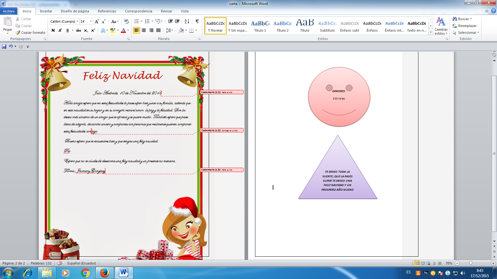 Espero que een esta navidad te la pases  muy bien junto con tu familia y tu seres queridos que tu navidad sea inolvidable y recuerda que siempre que la quedre mucho